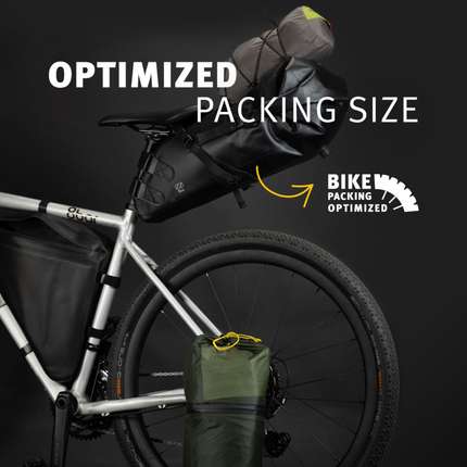 Our bikepacking optimized tents are outstanding lightweight tents with extra short pole segments under 40 cm. The carry bag is variable in length and can be reduced from 40 to 25 cm by removing the poles. The short carry bag fits easily on the handlebars. For Bikepacking the poles can be stowed separately where they possibly fit better, for example in a frame bag.