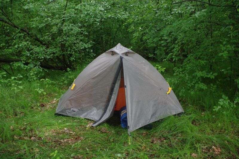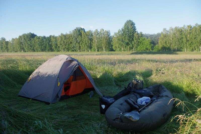 Für den letzten Abschnitt wechselte ich nun auf das zweite Boot und begab mich direkt nach Forst. Zunächst versperrte mir noch einmal ein breites Wehr den Weg, dahinter folgte dann aber wieder etwas Strömung, die mich flott den Fluss hinuntertrug. In Forst angekommen, bog ich ab in den Mühlgraben und gelangte direkt in die Stadtmitte. Hier endete dann auch schon mein kleiner Ausflug an den Rand Brandenburgs. Neben den Schlauchbooten und diverser anderer Ausrüstung hatte ich erstmals auch das Charger zum testen dabei. Es hat mich vor allem wegen des genialen Raum-Gewichts-Verhältnisses neugierig gemacht, denn es bietet Platz für zwei Personen und wiegt trotzdem nur 2,6 kg. Bei dem Gewicht kann man es auch getrost mit auf eine Solotour nehmen – und sich des Nachts so richtig ausbreiten. Fazit: ein super Zelt, das sich für kleine, aber auch größere Touren allein oder zu zweit bestens eignet.
