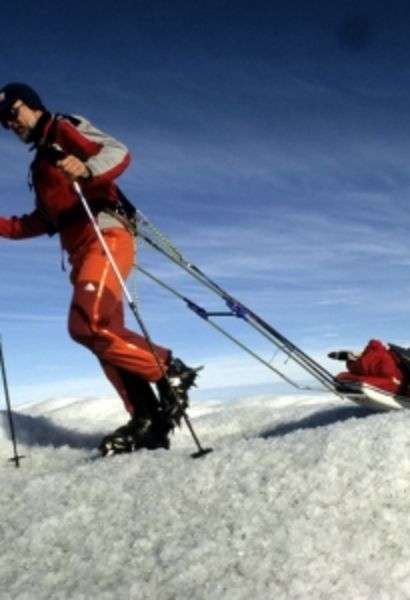 The climate change is a constant topic in the media. From a global viewpoint, 2007 is expected to be one of the warmest years ever. The North Pole can now almost be reached without using icebreakers. The ozone hole above the Antarctic has grown larger than ever before. The largest glaciers on earth react very responsively to global climate changes. The changes in Greenland’s ice mass are also important indications for climate processes all across the globe. It is thus incredibly fascinating to search for traces of global warming in Greenland. In 2002, led by the mountaineer and geodesist Wieland Adler of Dresden, a team of four measured (to the centimeter) the height of the ice along a 700 km-long traverse across the inland ice of Greenland. This was a historical route that the Swiss meteorologist Alfred de Quervain first traversed in 1912.