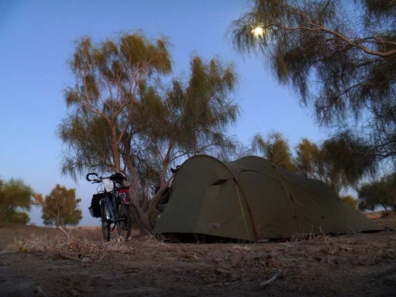 Ein Zelt auf das wir uns verlassen können, eröffnet uns die Möglichkeiten, auch ohne Pläne loszuradeln. Morgens wissen wir nie, wo wir abends ankommen. Mal fragen wir bei Bauern um die Erlaubnis, unser Zelt auf ihrem Grundstück aufzubauen, andermals breiten wir uns in der Wüste, im Wald oder in der Nähe eines Flusses aus und lassen uns überraschen. Vielleicht hat uns ja jemand entdeckt und wir können uns auf eine lustige Unterhaltung voller Handzeichen, Geräusche und Gelächter freuen.