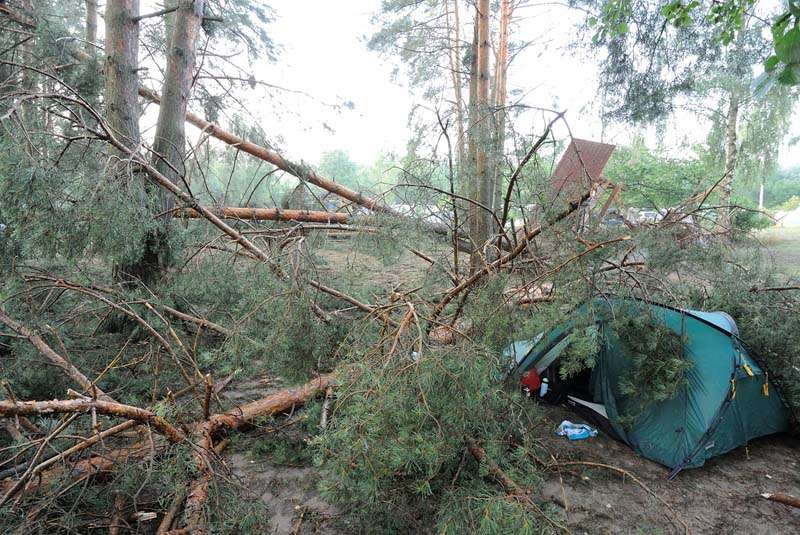 Zelten in einer Tornadoschneise